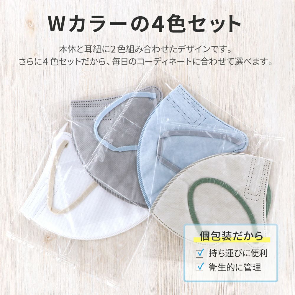 他の画像を見る 【メール便 送料無料】不織布マスク W COLOR MASK 3D キープフィット コールドカラー4色セット 20枚入 通常 ¥ 780 のところ ¥ 299 税込 在庫切れ お気に入りに登録する