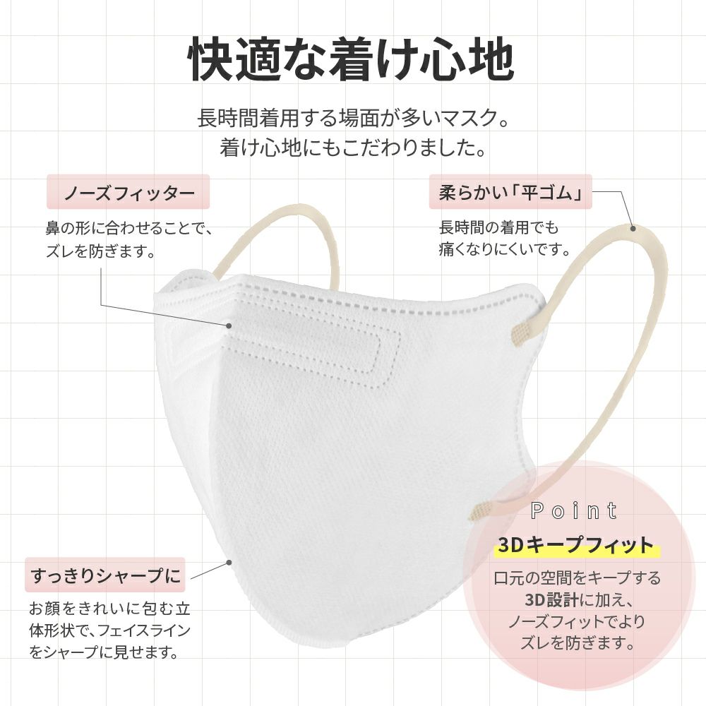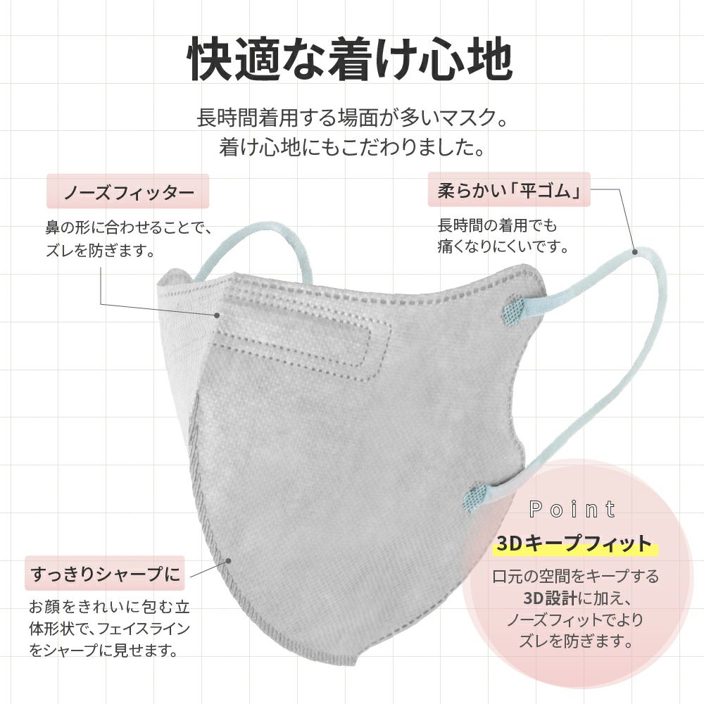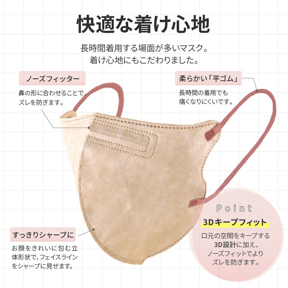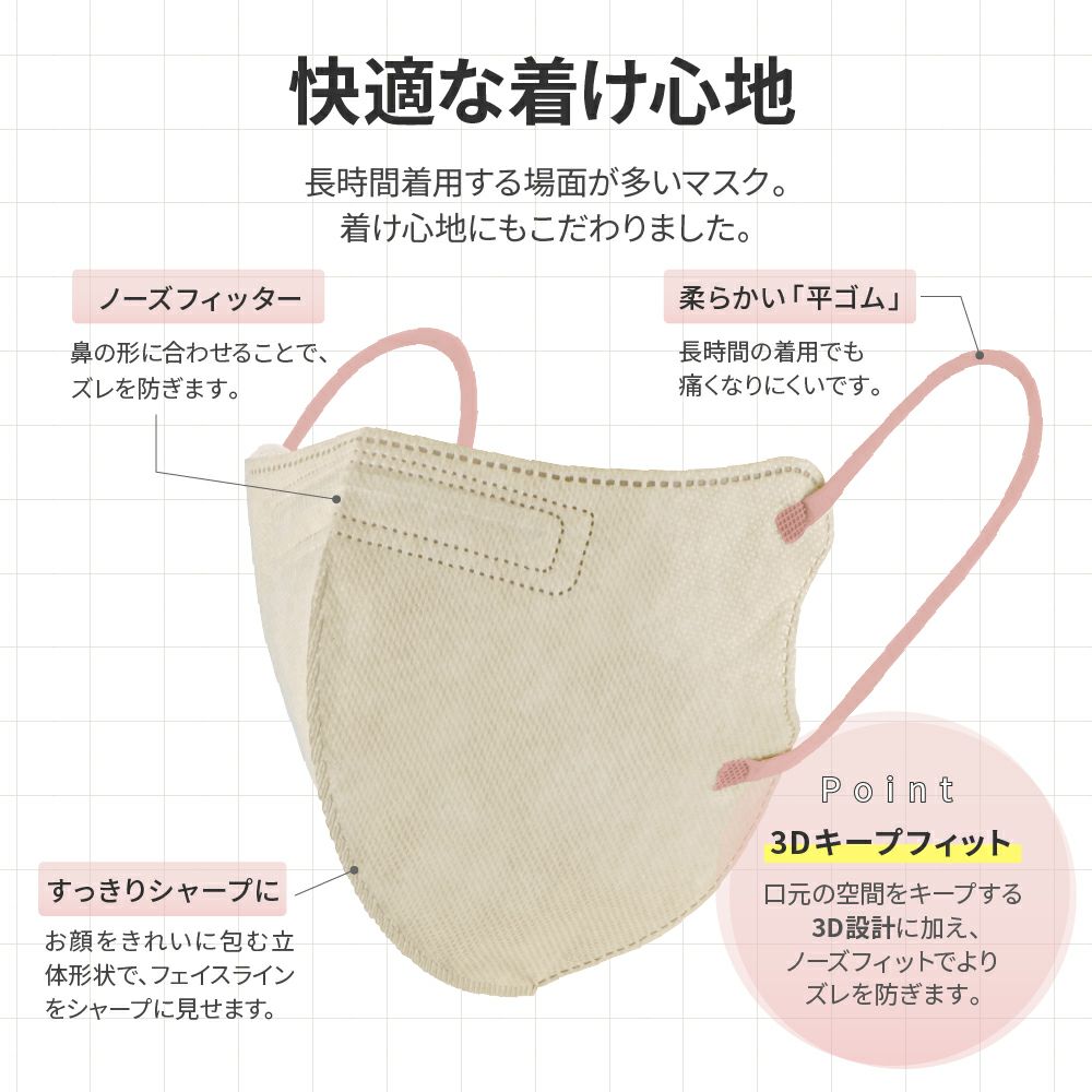他の画像を見る 不織布マスク 4層 フルカバータイプ 3色セット(シルキーピンク/アイボリー/ラベンダー) 30枚入 初回限定クーポン 通常 ¥ 780 のところ ¥ 399 税込 お気に入りに登録する