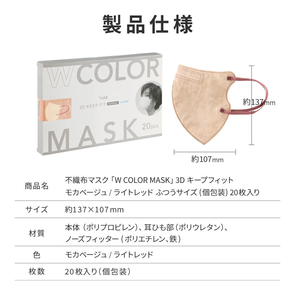他の画像を見る 【メール便 送料無料】不織布マスク W COLOR MASK 3D キープフィット ホワイト/ライトベージュ 20枚入 通常 ¥ 780 のところ ¥ 449 税込 在庫切れ お気に入りに登録する