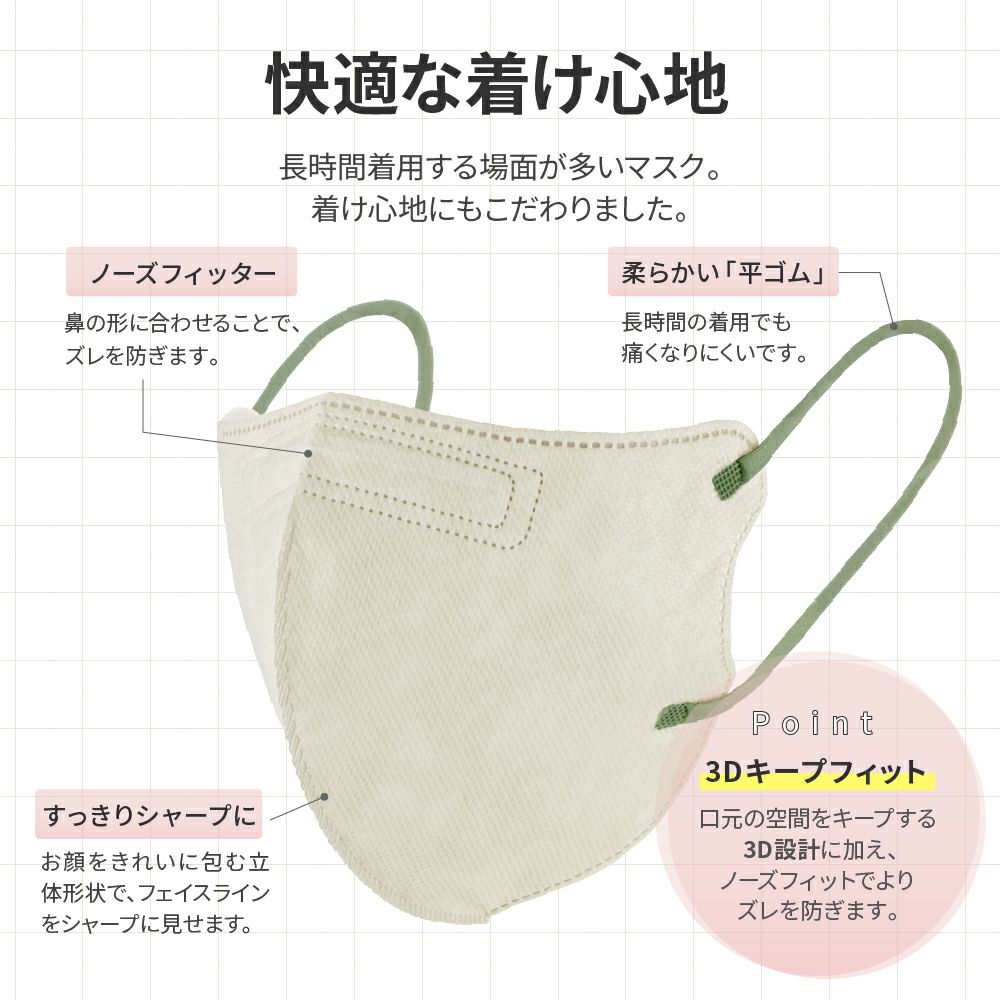 他の画像を見る 【メール便 送料無料】不織布マスク W COLOR MASK 3D キープフィット グレージュ/カーキ 20枚入 通常 ¥ 780 のところ ¥ 299 税込 在庫切れ お気に入りに登録する