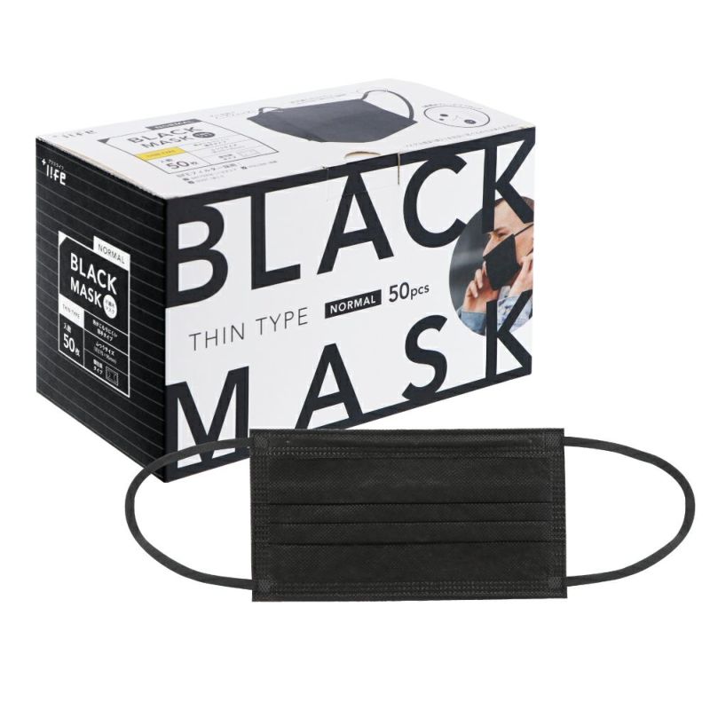不織布マスク 薄手タイプ ふつうサイズ 50枚入 (個包装) ブラック