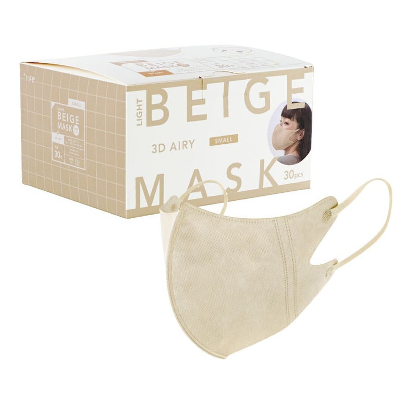 不織布マスク 3Dエアリータイプ 小さめサイズ 30枚入 (個包装) ライトベージュ