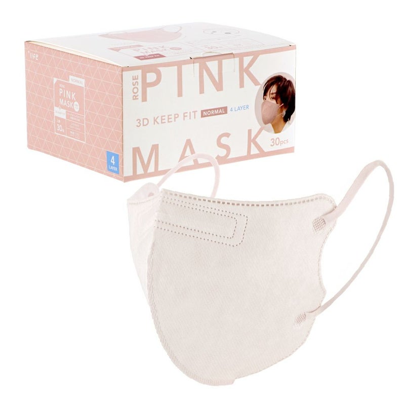 不織布マスク 3D キープフィット ふつうサイズ 30枚入 (個包装) ローズピンク