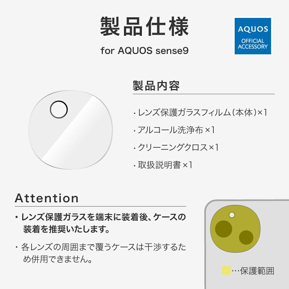 他の画像を見る 【AQUOS sense9】SH-53E レンズ保護ガラスフィルム 「GLASS PREMIUM FILM」 レンズ単体型 超透明 初回限定クーポン ¥ 986 税込 お気に入りに登録する