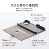 - サイドベルトやインナーがバイカラーになった遊び心ある手帳型ケース/ピタッと固定できるマグネット仕様/すぐ取り出せて嵩張らないカード収納ポケット(1枚)/動画視聴に最適なスタンド機能/ストラップホール搭載