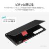- サイドベルトがバイカラーになった遊び心ある手帳型ケース/ピタッと固定できるマグネット仕様/すぐ取り出せて嵩張らないカード収納ポケット(1枚)/動画視聴に最適なスタンド機能/ショルダーストラップが使える2つのホール搭載