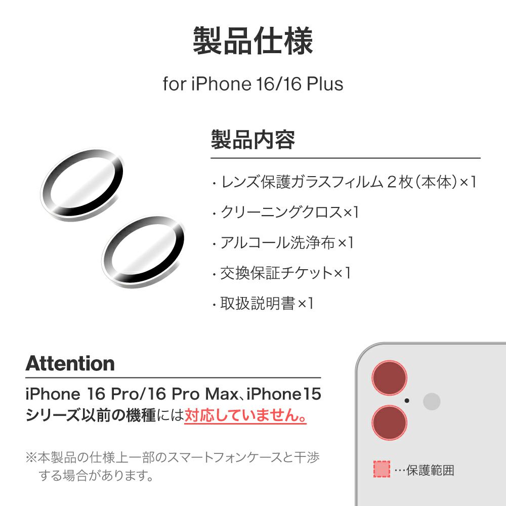 他の画像を見る LEPLUS NEXT 【iPhone 16 / iPhone 16 Plus】 レンズ保護ガラスフィルム 「GLASS PREMIUM FILM」 全面保護 超高透過 約98% 初回限定クーポン ¥ 1,580 税込 お気に入りに登録する