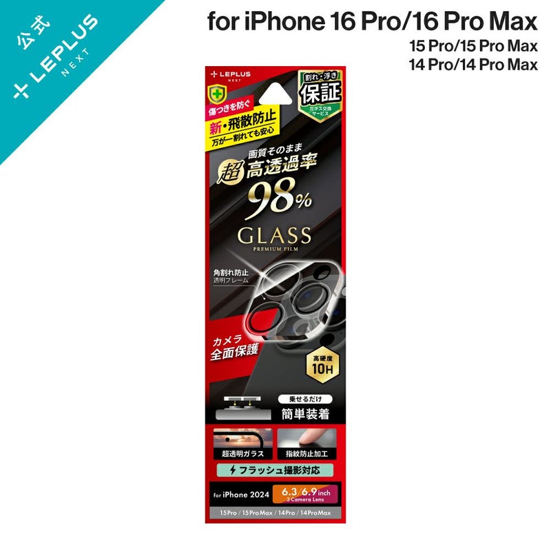 iPhone 16 Pro/16 Pro Max レンズ保護ガラスフィルム 「GLASS PREMIUM FILM」 全面保護 超高透過 約98%