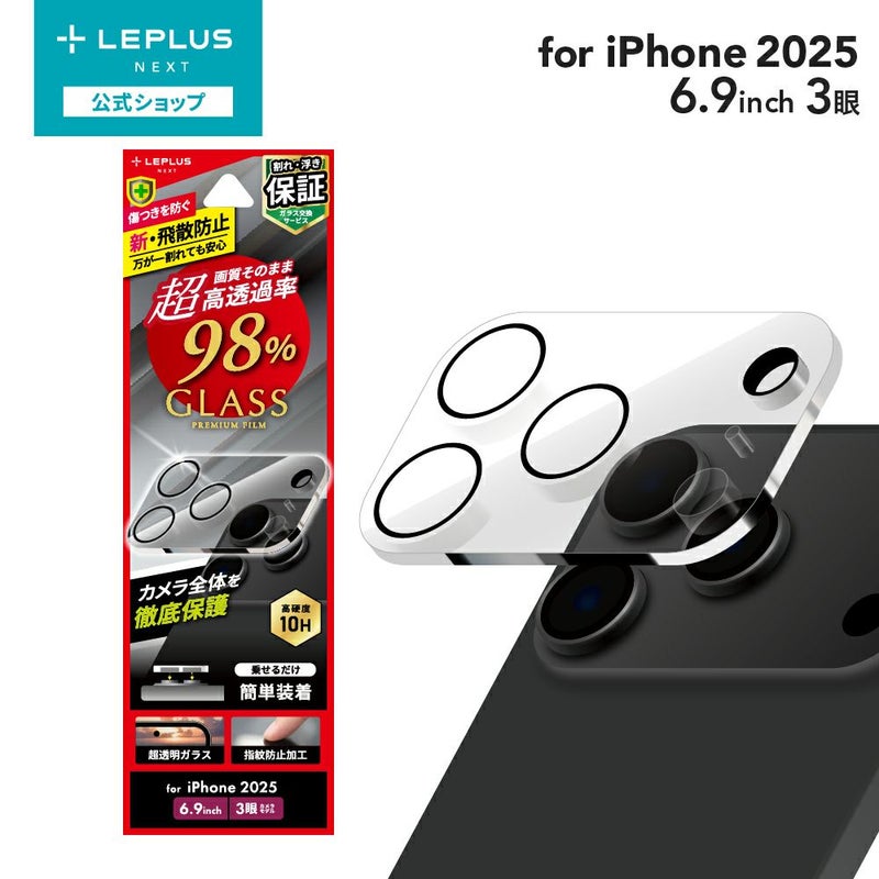 【iPhone 17 Pro Max】レンズ保護ガラスフィルム「GLASS PREMIUM FILM」全面保護 超高透過 約98%