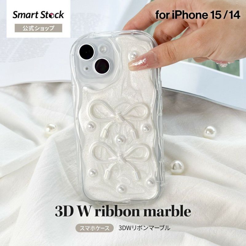 【iPhone 15/iPhone 14】プチプラ スマホケース「3DWリボンマーブル」