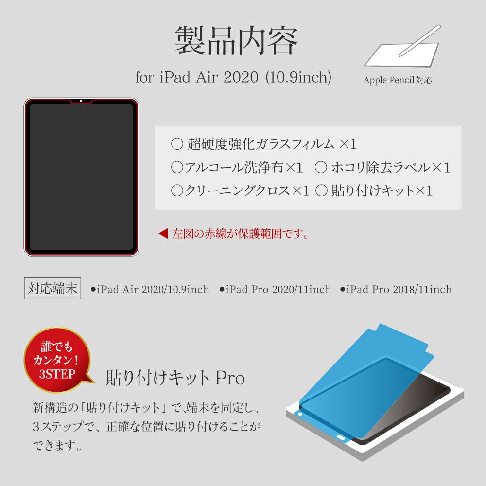 他の画像を見る 【メール便 送料無料】iPad Air 2020 (10.9inch) iPad Pro 2020 (11inch) iPad Pro 2018 (11inch) 液晶保護フィルム SHIELD・G HIGH SPEC FILM 高透明 初回限定クーポン 通常 ¥ 1,408 のところ ¥ 380 税込 在庫切れ お気に入りに登録する