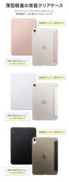 - 薄くて軽い、持ち運びに最適なフラップケース/動画視聴・タイピングに最適な2つの角度のスタンド機能/指紋がつきにくいハーフクリア仕様ケース(※側面は光沢仕様となります。)/手触りがよく気品のある高品質PUレザー使用/スタンド機能を安定して使いやすくする、滑り止めに特化したインナー生地を使用