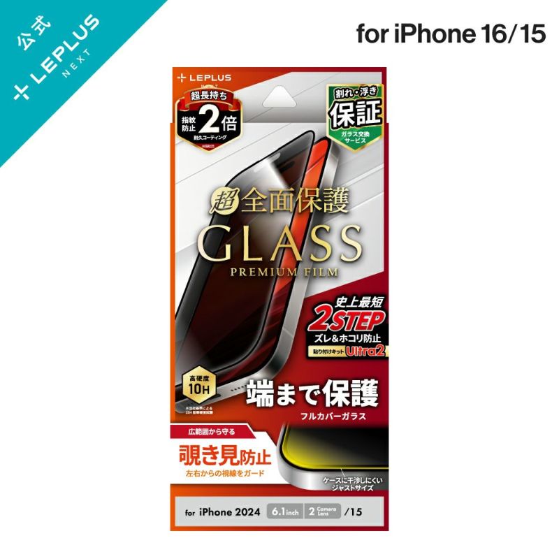 iPhone 16 ガラスフィルム「GLASS PREMIUM FILM」全面保護 反射防止