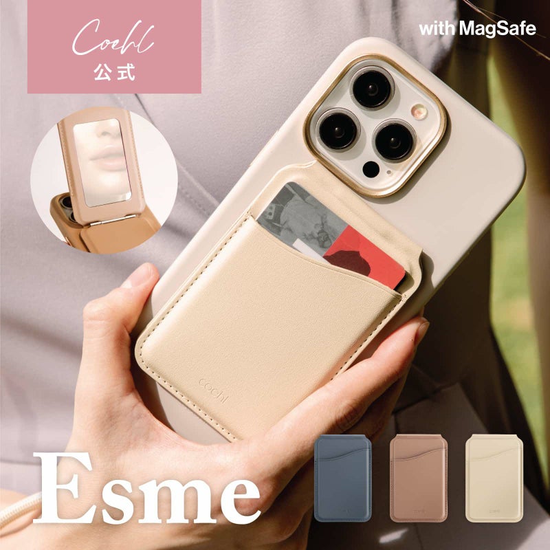 - #カードホルダー #二つ折りデザイン #3in1 #コンパクト #ミラー #ハンズフリー #卓上スタンド #スリム #導電性両面粘着テープ付き #シリコンスナップリング付属 #ESMEMCHM-