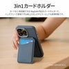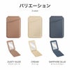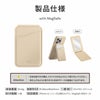 - MagSafe対応の3in1カードホルダー/二つ折りデザインのコンパクトなミラー/ハンズフリーで使用できる卓上スタンド/スリムなカードホルダー/MagSafe非対応端末やケースに取り付け可能な導電性両面粘着テープ付きシリコンスナップリング付属