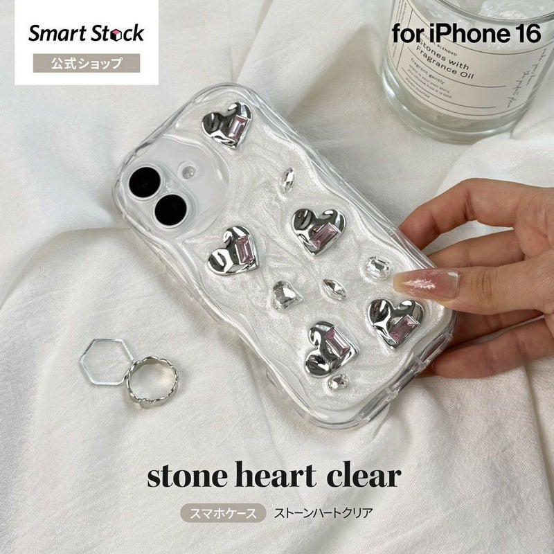 【iPhone 16】プチプラ スマホケース「ストーンハートクリア」