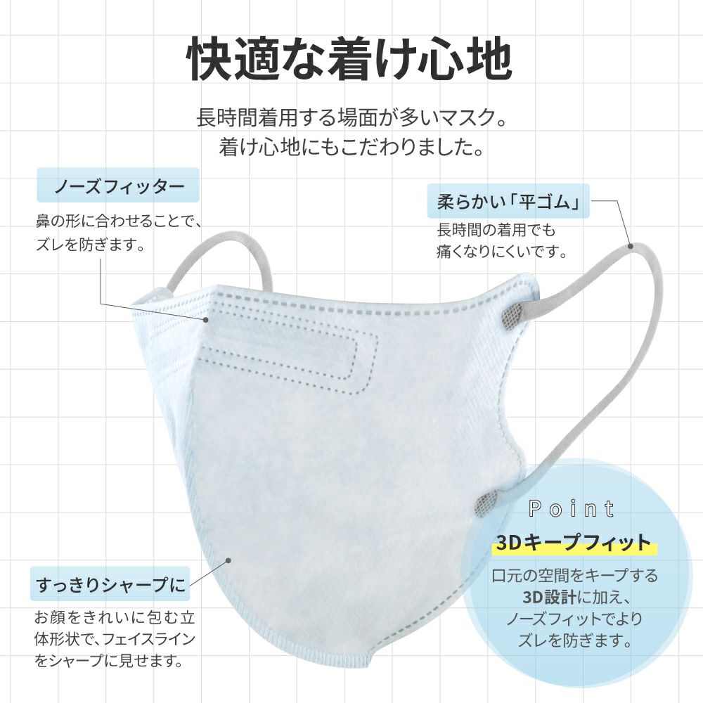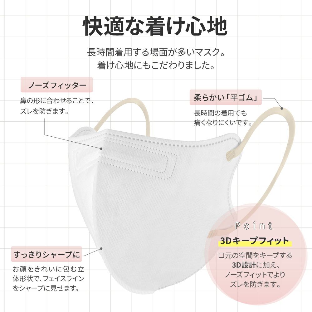 他の画像を見る 不織布マスク 4層 フルカバータイプ 3色セット(シルキーピンク/アイボリー/ラベンダー) 30枚入 初回限定クーポン 通常 ¥ 780 のところ ¥ 399 税込 お気に入りに登録する