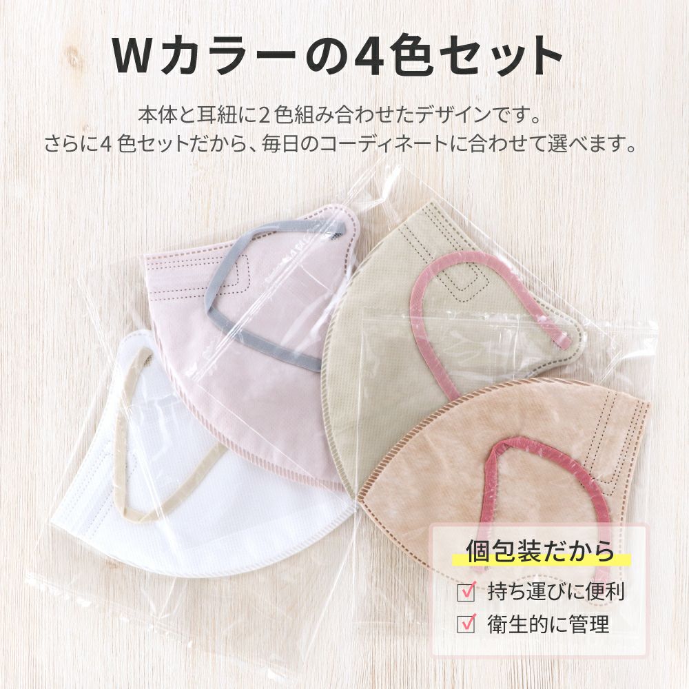 他の画像を見る 【メール便 送料無料】不織布マスク W COLOR MASK 3D キープフィット ウォームカラー4色セット 7枚入 通常 ¥ 800 のところ ¥ 499 税込 在庫切れ お気に入りに登録する