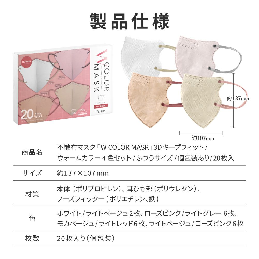 他の画像を見る 【メール便 送料無料】不織布マスク W COLOR MASK 3D キープフィット ホワイト/ライトベージュ 20枚入 通常 ¥ 780 のところ ¥ 449 税込 在庫切れ お気に入りに登録する
