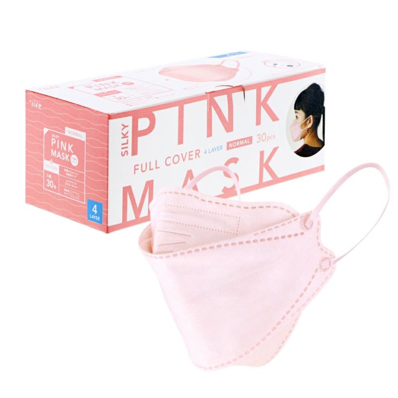 不織布マスク 4層 フルカバータイプ ふつうサイズ 30枚入 (個包装) シルキーピンク
