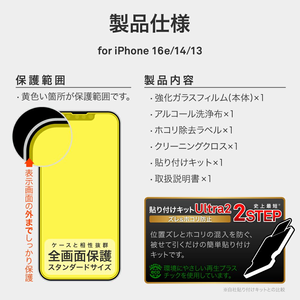 他の画像を見る 【iPhone 16e / iPhone 14 / iPhone 13】ガラスフィルム「GLASS PREMIUM FILM」 全面保護 反射防止 ¥ 2,180 税込 在庫切れ お気に入りに登録する