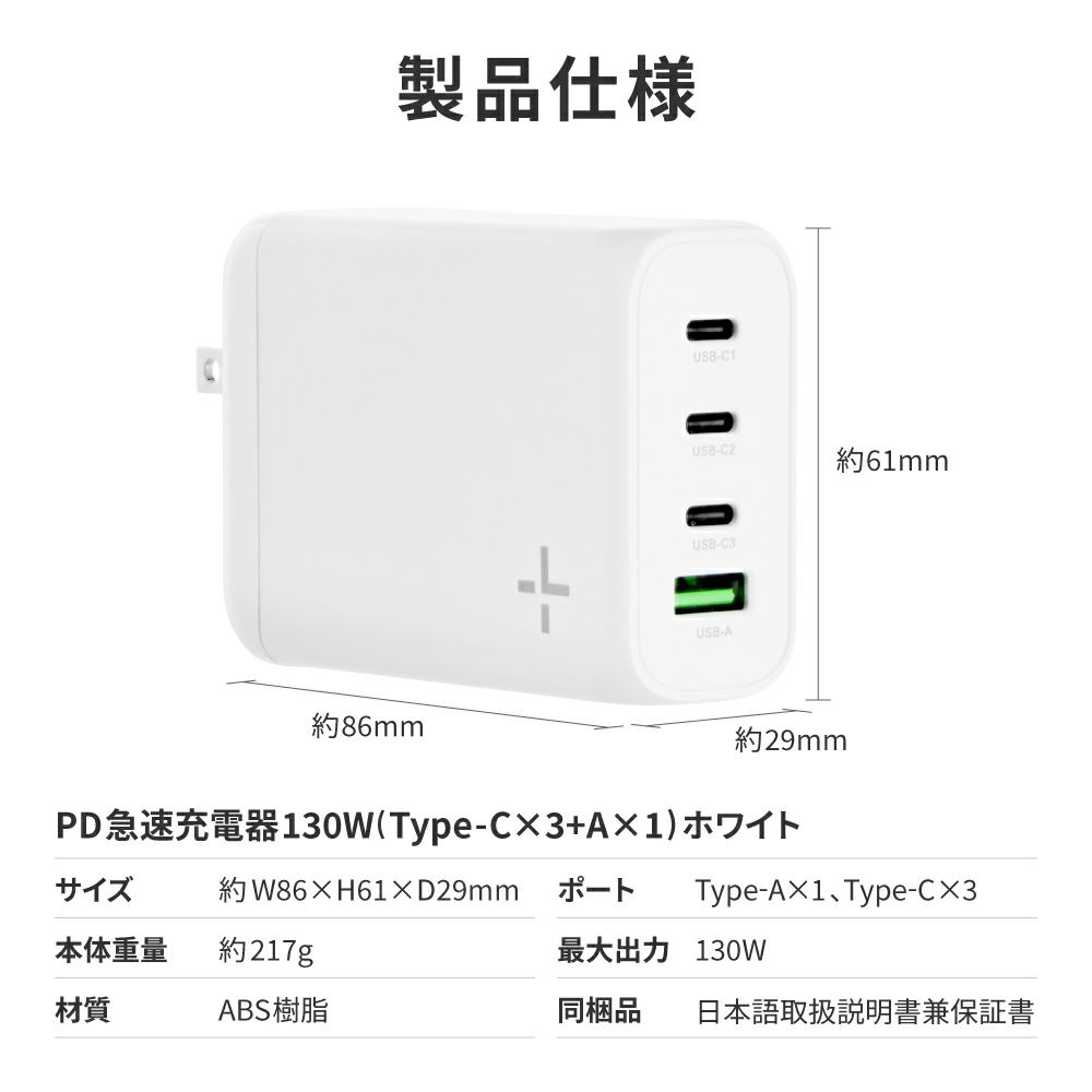 他の画像を見る Power Delivery 対応 130W PD急速充電器 ACアダプタ USB 4ポート Type-C Type-A ホワイト 初回限定クーポン 通常 ¥ 9,980 のところ ¥ 4,880 税込 在庫切れ お気に入りに登録する